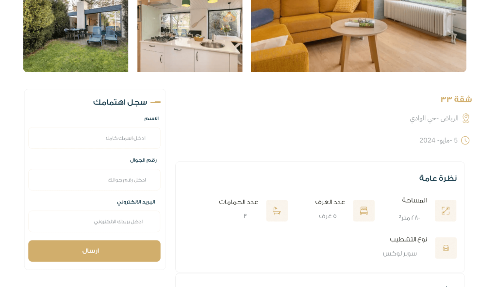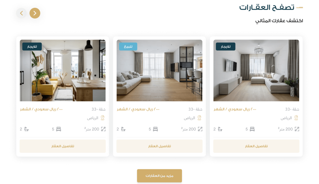 • عرض مميز للعقارات وصفحة خاصة بكافة التفاصيل المطلوبة لمراجعة العقار من قبل المستخدمين.
