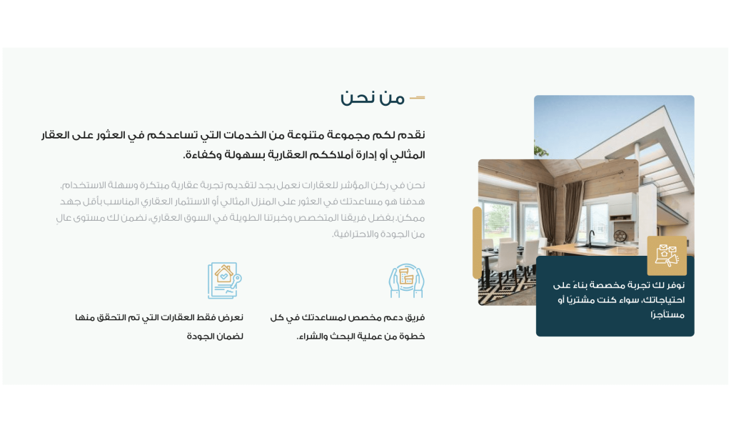 شركة ركن المؤشر للعقارات تعمل بجد لتقديم تجربة عقارية مبتكرة وسهلة الاستخدام. هدفنا هو مساعدتك في العثور على المنزل المثالي أو الاستثمار العقاري المناسب بأقل جهد ممكن. بفضل فريقنا المتخصص وخبرتنا الطويلة في السوق العقاري، نضمن لك مستوى عالٍ من الجودة والاحترافية.