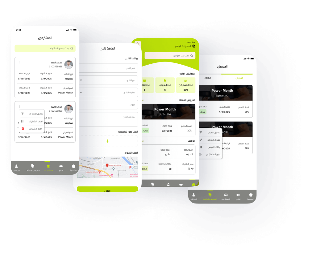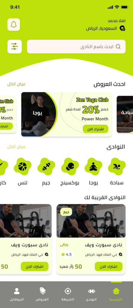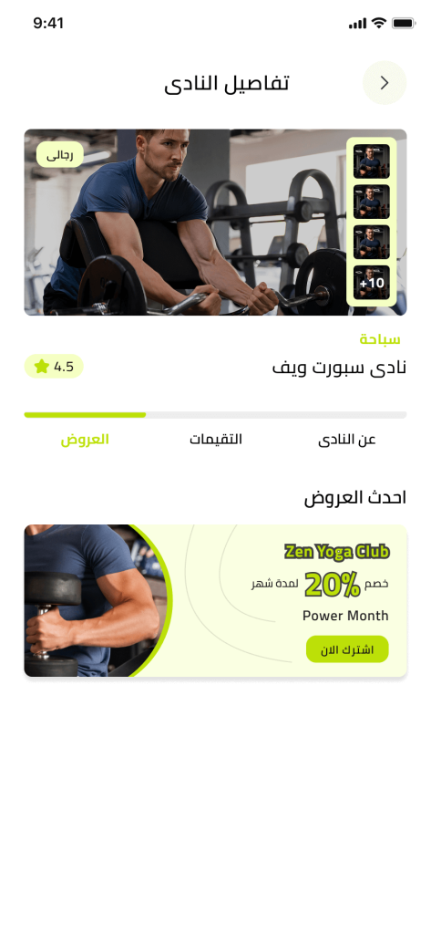 يقدم التطبيق مجموعة متميزة من الخدمات الخاصة بالنوادي الرياضية وممارسة التمارين والالعاب الرياضية ليكون التطبيق منصة شاملة تجمع بداخلها كل النوادي والالعاب الاقرب إليك